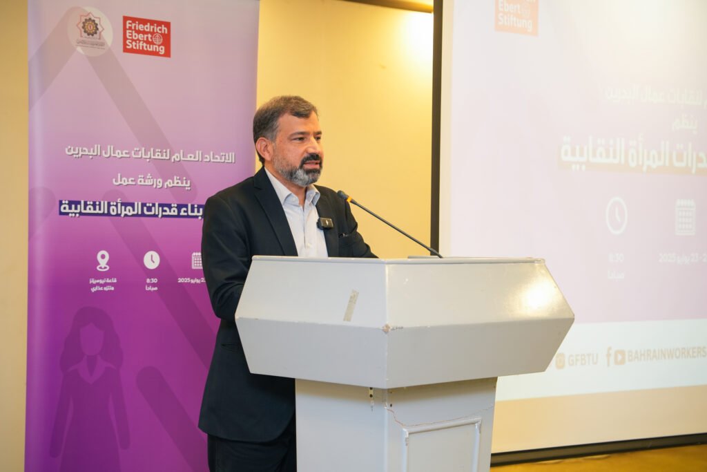 أطلق الاتحاد العام لنقابات عمال البحرين وبالتعاون مع منظمة فريدريش إيبرت. صباح اليوم الثلاثاء الموافق 22 يوليو 2025، فعاليات برنامج بناء قدرات المرأة النقابية، وذلك في قاعة نيو سيزونز بمنتزه عذاري، بحضور نخبة من النقابيات والعاملات في القطاعات الحيوية.