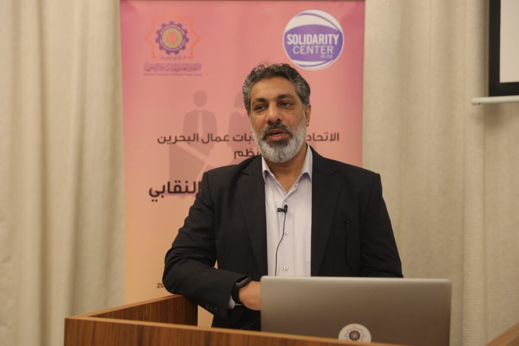 دعا نائب الأمين العام للاتحاد العام لنقابات عمال البحرين، يوسف المقهوي، المرأة إلى الحفاظ على مكانتها ودورها في العمل النقابي، والذي أسسته النقابيات السابقات، منبها إلى أن تخلّي المرأة عن دورها النقابي، سيضعف العمل النقابي وتعزيز الحقوق والتشريعات والمكتسبات. جاء ذلك خلال الكلمة التي افتتح بها ورشة (تعزيز الوعي النقابي) التي يقيمها الاتحاد العام بالتعاون مع مركز التضامن العمالي، يومي 24 و25 سبتمبر 2025م.