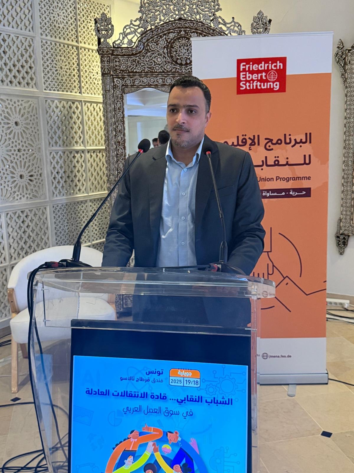 ⁨ الاتحاد العام يشارك في ندوة شبابية عربية حول الانتقالات العادلة في سوق العمل