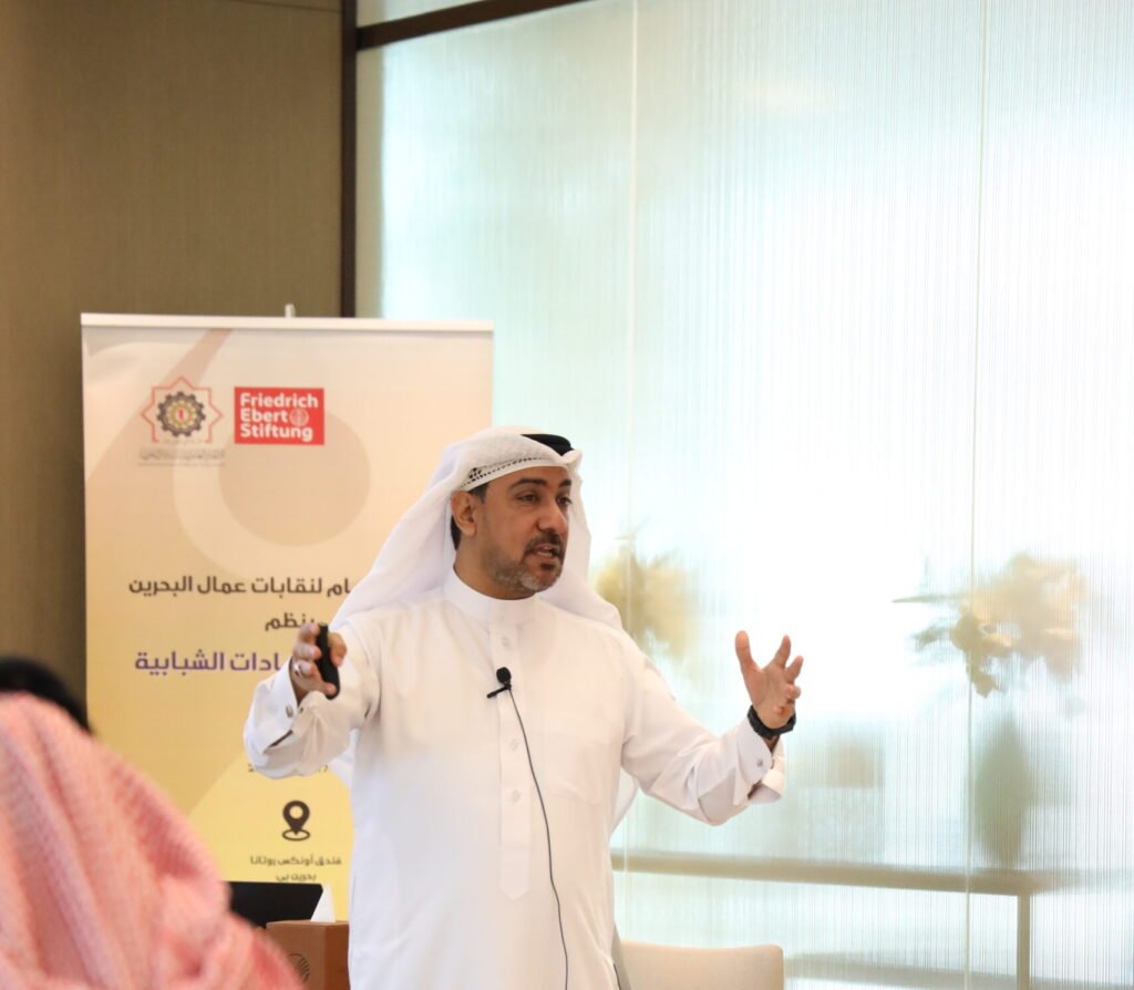 ضمن ورشات اليوم الأول من ورش “إعداد القيادات الشبابية” الذي ينظمه الاتحاد العام لنقابات عمال البحرين بالتعاون مع مؤسسة فريدريش إيبرت، أقيمت صباح اليوم الإربعاء 6 أغسطس 2025 ، ورشة تدريبية متخصصة ركزت على الهياكل النقابية،قدمها النقابي حسين العصفور، وذلك ضمن برنامج يهدف إلى تعزيز الأداء النقابي وترسيخ مبادئ الديمقراطية الداخلية في العمل النقابي.